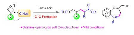 相關(guān)工作以題為“Mild C–C Bond Formation via Lewis Acid Catalyzed Oxetane Ring Opening with Soft Carbon Nucleophiles”(通過路易斯酸催化的氧雜環(huán)丁烷軟碳親核試劑開環(huán)反應(yīng)實現(xiàn)C-C成鍵)在線發(fā)表在《德國應(yīng)用化學(xué)》(Angew. Chem. Int. Ed.)上。常州大學(xué)為該論文的第一通訊單位,黃海博士為第一作者,在讀碩士張?zhí)煊顬榈诙髡撸瑢O建偉為論文的通訊作者。