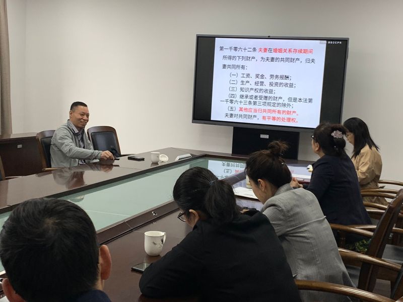 本次學習結合學院實際及職工需要,院黨委誠邀史良法學院沈旭紅老師,主要針對婚姻法中夫妻共同財產(chǎn)的認定及保護夫妻合法權益方面做了專項講座。此講座反響良好,有講、有問、有答,工會干部們邊聽講座邊向沈老師提問,沈老師也逐一解答了大家的問題。氣氛非常熱烈。大家一致認為,可以進一步擴大講座范圍,使更多的教職員工受益。