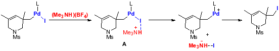研究發(fā)現(xiàn),便宜易得的三乙胺四氟硼酸鹽(Et3NH)(BF4)作為氫鍵給體,可以和C(sp3)-PdII-I形成氫鍵加和物A。氫鍵的形成削弱了PdII-I鍵,有效促進碘負離配體的配位解離,使得還原消除的反應能壘大大降低,最終在保持高效率的同時可以使反應溫度降至60度。