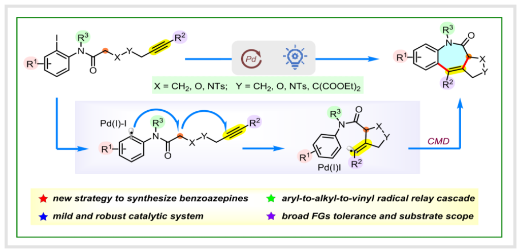 Du,Yu-jia?, Sheng, Xia-xin?, Tang, Lu-ning, Chen, Jia-ming, Liu, Guo-ying, Hu, Hao, Yang, Sen*, Zhu Lei*, and Chen, Ming.*Accessing Benzoazepine Derivatives via Photoinduced Radical Relay Formal [5+2] of Amide/Alkyne Enabled by Palladium Catalysis. Org. Lett. 2024, 26, 2662-2667.