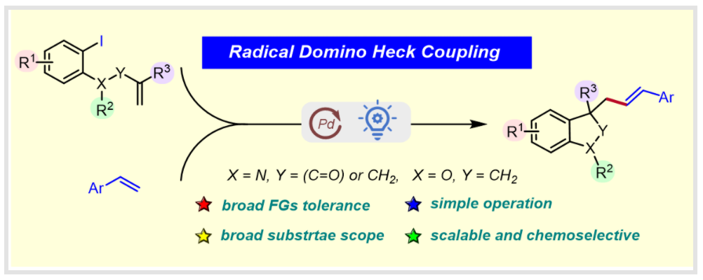 Li, Pei-shang.; Teng, Qiaoqiao*.; and Chen, Ming.* Photoinduced Radical Cascade Domino Heck Coupling of N-Aryl Acrylamide with Vinyl Arenes Enabled by Palladium Catalysis. Chem. Commun. 2023, 59, 10620-10623.