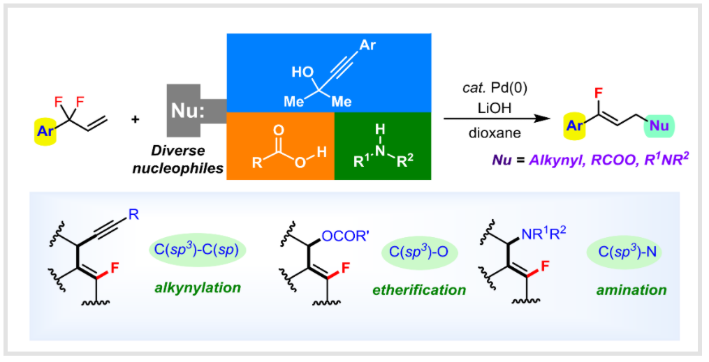 Tang, Lu-ning.; Liu, Guo-ying.; Li, Jun-hua and Chen, Ming.* Palladium-Catalyzed Diversified Synthesis of mono-Fluorinated Alkenes from Allylic gem-Difluorides through Pd-OH intermediate. Org. Lett.2023, 25, 9064-9069.