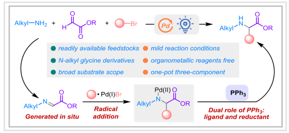 Yang, Sen.; Hu, Hao.; Li, Jun-hua and Chen, Ming.* Direct Alkylation of Glycine Derivatives via Photoinduced Palladi-um Catalysis, Utilizing Intermolecular Hydrogen Atom Transfer Mediated by Alkyl Radicals. ACS Catalysis.2023, 13, 15652?15662. DOI:10.1021/acscatal.3c04075.