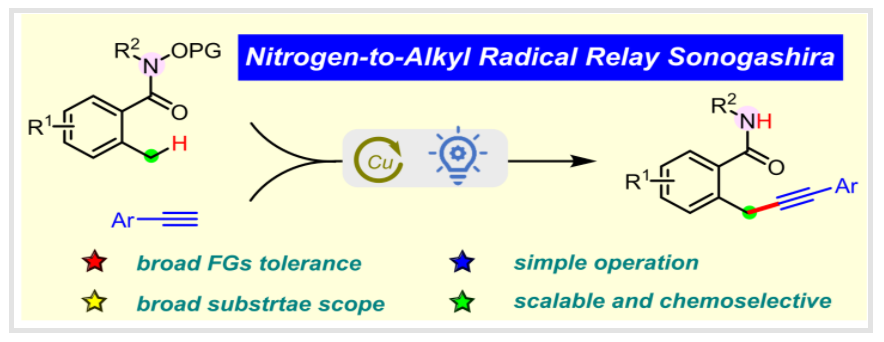 Zhan, Yan-fang+.; Jia-ming Chen+.; Sheng, Xia-xin.; Qiu, Chao-ying.; Jiang, Yan*, Yang, Sen*.; and Chen Ming*. Photoinduced Copper Catalyzed Nitrogen-to-Alkyl Radical Relay Sonogashira-type Coupling of o-Alkylbenzamides with Alkynes. Chem. Commun. 2024, 60, 7906-7909. .