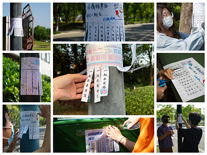 各具風(fēng)格的手制便利貼上,極具創(chuàng)意的圖案文字、小心翼翼的邊框剪裁,每一筆都蘊含著激情、每一筆都蘊含著希望。燈柱上、樹干上、花壇旁……校園內(nèi)的各個角落都貼滿了“濃濃真情”,成為校園內(nèi)別樣的風(fēng)景線。“一起吃火鍋”、“一起看電影”、“一起去露營”、“一起去海邊”、“一起去音樂節(jié)”······這些心愿便利貼飽含著同學(xué)們對解封校園的期待,承載著“成功抗擊疫情”的愿望。