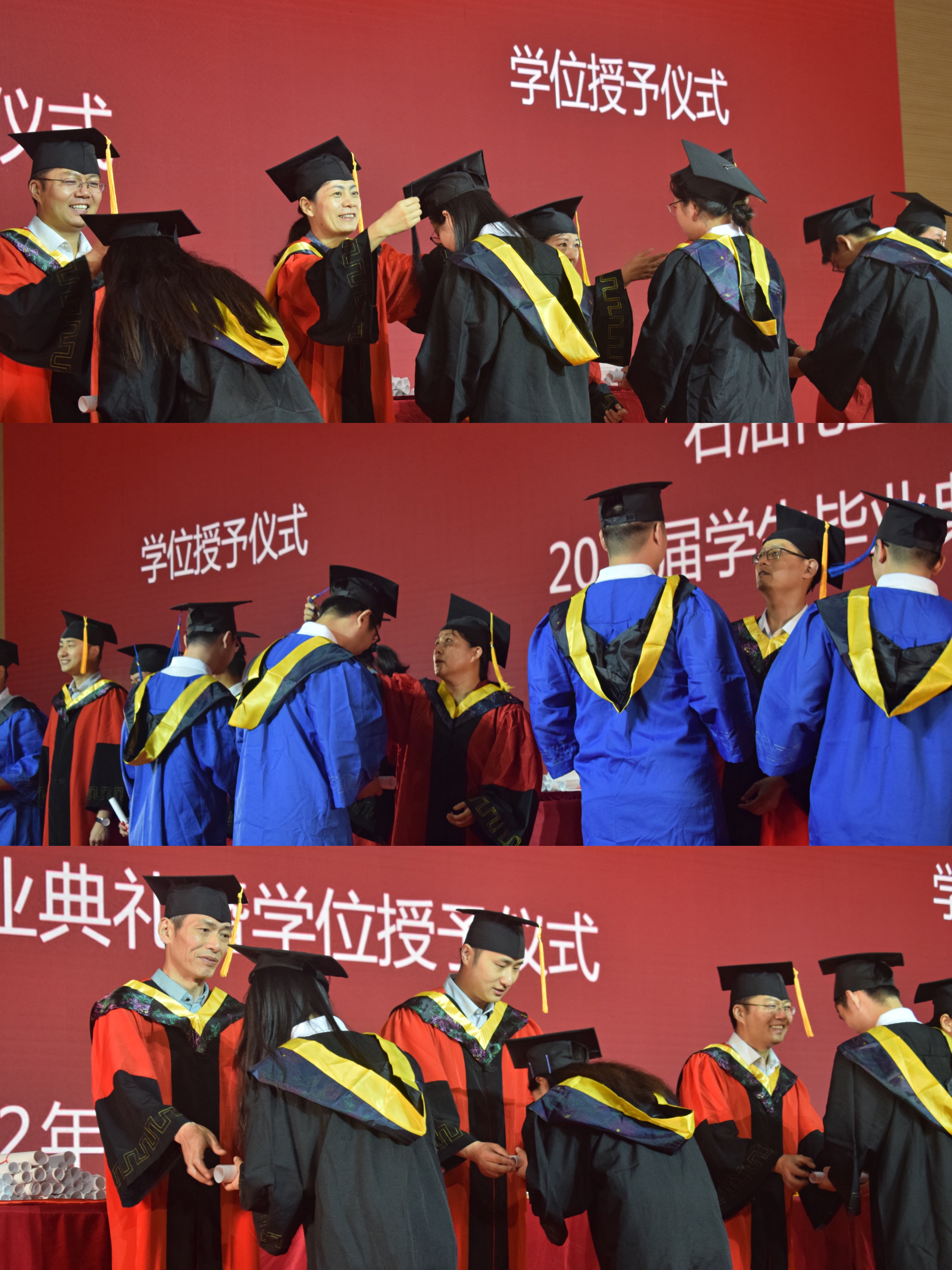 學(xué)位授予儀式上學(xué)位委員會(huì)成員為畢業(yè)生們撥穗正冠,院長鐘璟代表全體教師對(duì)畢業(yè)生們表達(dá)了殷切的祝福,愿同學(xué)們面向未來,矢志奮斗、行而不輟;堅(jiān)定目標(biāo)、勇往直前;傳承創(chuàng)新、勇闖新路。