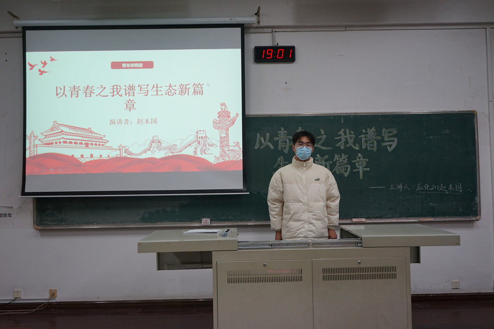 為深入學(xué)習(xí)貫徹黨的二十大精神,牢固樹立和踐行綠水青山就是金山銀山的理念,強化大學(xué)生生態(tài)文明意識,我院于12月5日在W1205舉辦“青年講師團(tuán)”系列講座——以青春之我譜寫生態(tài)新篇章。講座由本科生第一學(xué)生黨支部黨員趙本國主講,各年級學(xué)生代表參加。