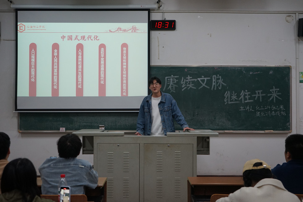 李成旭向同學(xué)們介紹了近現(xiàn)代中國(guó)現(xiàn)代化進(jìn)程與歷史、改革開放后中國(guó)現(xiàn)代化問題的提出,使同學(xué)們明確了黨的十八大以后中國(guó)式現(xiàn)代化的發(fā)展目標(biāo)。張志豪從傳統(tǒng)節(jié)日、六大建筑派系、傳統(tǒng)文化遺產(chǎn)著手,帶領(lǐng)同學(xué)領(lǐng)略了傳統(tǒng)文化的魅力,同時(shí)強(qiáng)調(diào)了傳承傳統(tǒng)文化的重要性和必要性。望我院的學(xué)生通過此次講座能夠結(jié)合所學(xué)專業(yè),利用所學(xué)知識(shí),推動(dòng)傳統(tǒng)文化的傳承與創(chuàng)新,堅(jiān)定文化自信,為中國(guó)式現(xiàn)代化的推進(jìn)作出獨(dú)屬于大學(xué)生的特別貢獻(xiàn)。
