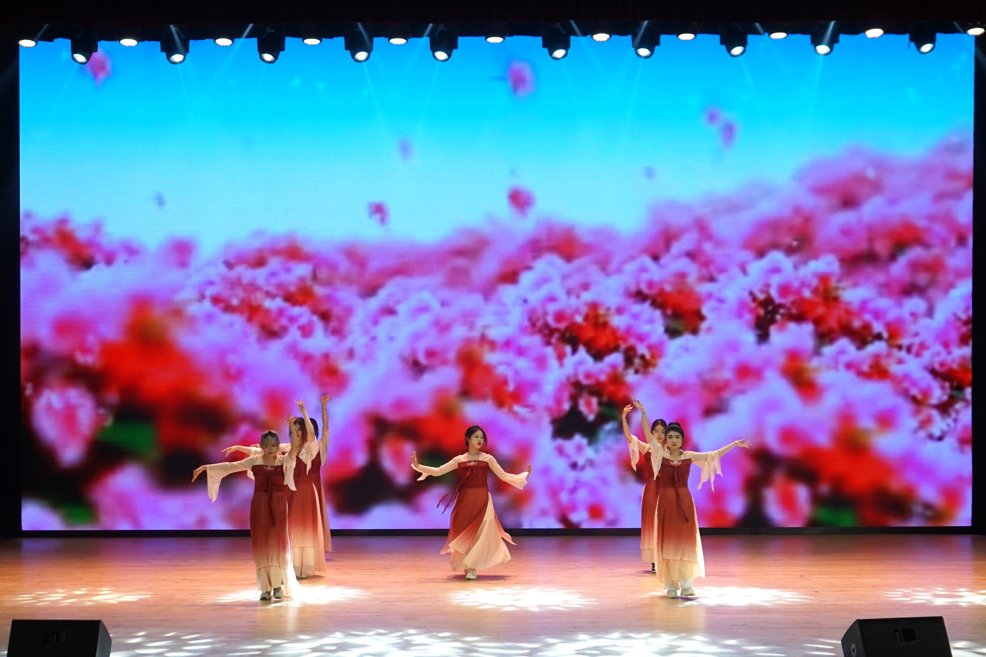 本屆大賽由各學院隊伍報名參賽,經(jīng)過初賽選拔共有十支隊伍進入決賽。舞臺上,優(yōu)美輕松的音樂響起,伴著動感的節(jié)拍,他們跳動輕快的腳步,揮灑舒放的手臂,扭動柔活的腰身,綻放燦爛的笑容。十支隊伍各有巧思,各有精彩,最終通過角逐,音樂與影視學院的作品《流光敘》和石油化工學院的作品《梅花三弄》獲得特等獎;石油與天然氣工程學院、能源學院的作品《神仙骨 飛天情》和音樂與影視學院的作品《海棠愛在心中》獲得一等獎;材料科學與工程學院的作品《蘭花》與翟秋白政府管理學院、周有光文學院的作品《灼灼荷花瑞》及藥學院、生物與食品工程學院的作品《紫荊葳蕤》獲得二等獎;城市建設學院的作品《小茉莉》和美術與設計學院的作品《紅顏凝香》及機械與軌道交通學院、智能制造產(chǎn)業(yè)學院的作品《驚鴻一面》獲得三等獎。