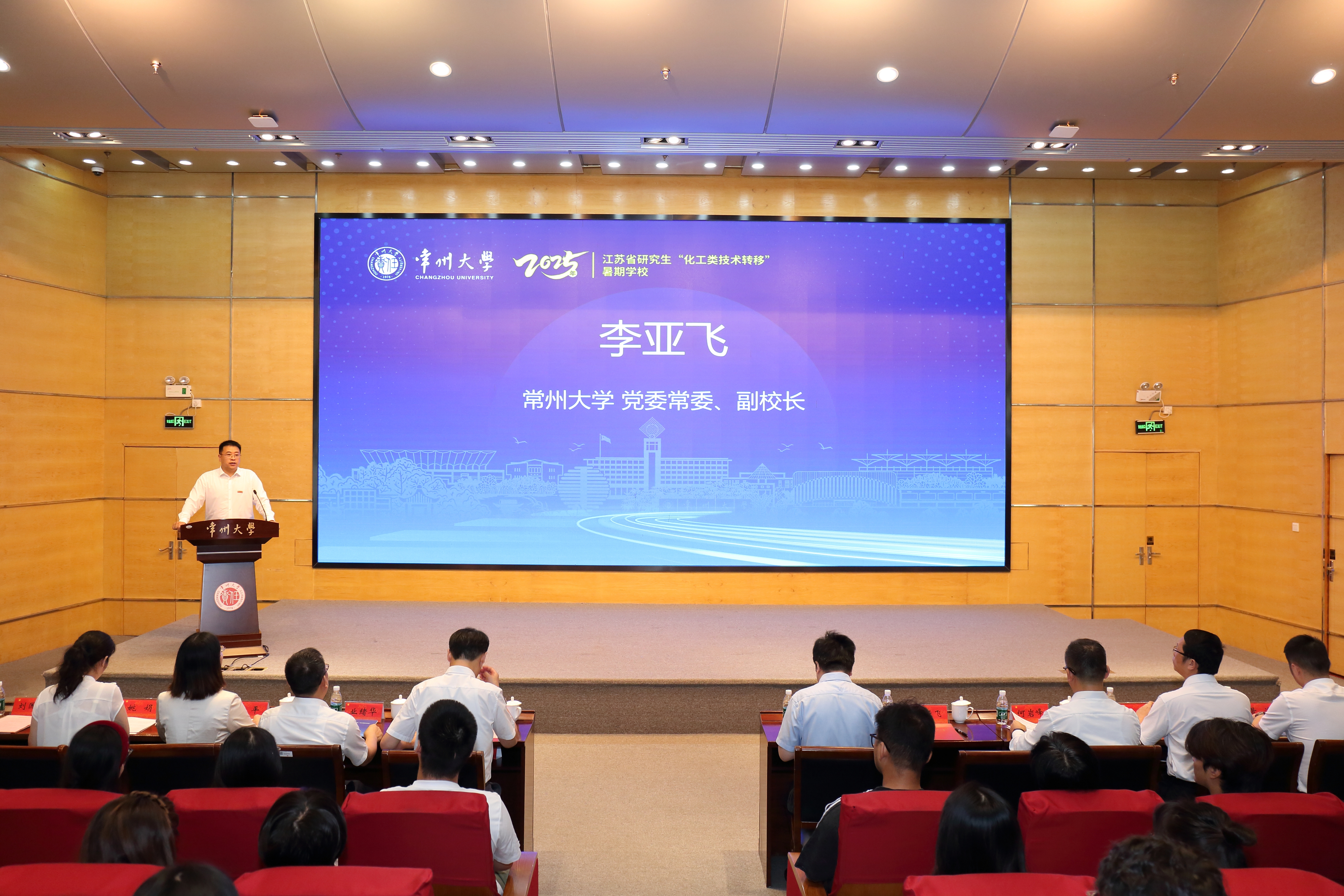 2025年8月25日上午,江蘇省研究生“化工類技術(shù)轉(zhuǎn)移”暑期學校開幕式在常州大學文彰樓報告廳隆重開幕。江蘇省教育廳研究生工作處處長金科,常州大學黨委副書記、校長陳海群,黨委常委、副校長李亞飛、校研究生院、石油化工學院、創(chuàng)新創(chuàng)業(yè)學院及技術(shù)轉(zhuǎn)移研究院等相關(guān)單位負責人,以及來自中國石油大學(北京)、寧波諾丁漢大學、寧波東方理工大學、中國礦業(yè)大學、南京工業(yè)大學、南京理工大學、江南大學、江蘇科技大學、淮陰工學院等十余所高校的百余名師生共同參加了開幕式,開幕式由李亞飛主持。