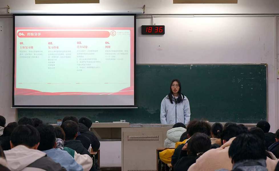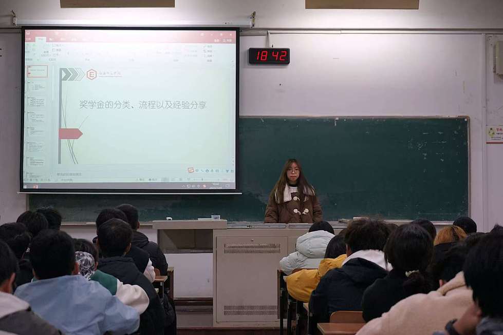 會上,兩位同學(xué)圍繞獎學(xué)金類型、學(xué)習(xí)規(guī)劃與綜合素質(zhì)拓展等方面展開分享。她們系統(tǒng)介紹了學(xué)院設(shè)立的各類獎學(xué)金,并基于自身經(jīng)驗,強(qiáng)調(diào)了“預(yù)習(xí)-聽課-復(fù)習(xí)”的高效學(xué)習(xí)閉環(huán),以及通過考證、競賽、學(xué)生工作與志愿服務(wù)等途徑提升綜合能力的重要性。她們鼓勵大家勇于嘗試、主動爭取。