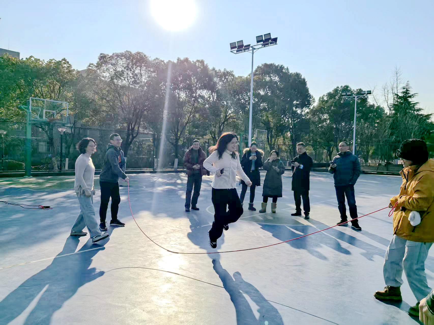 比賽現(xiàn)場氣氛熱烈,歡聲笑語不斷,老師們踴躍組隊參與配合默契,長繩翻飛,身姿躍動,現(xiàn)場的加油聲、歡呼聲交織一片,驅散了冬日的寒意,充分展現(xiàn)了學院教職工昂揚向上的精神風貌。