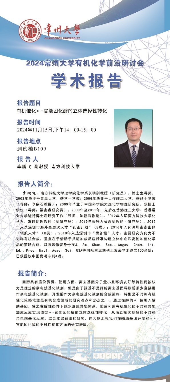 | 【學(xué)術(shù)報(bào)告】11月15日學(xué)術(shù)報(bào)告—李鵬飛副教授 南方科技大學(xué) ;朱燦青年研究員、錢輝副教授 復(fù)旦大學(xué) |