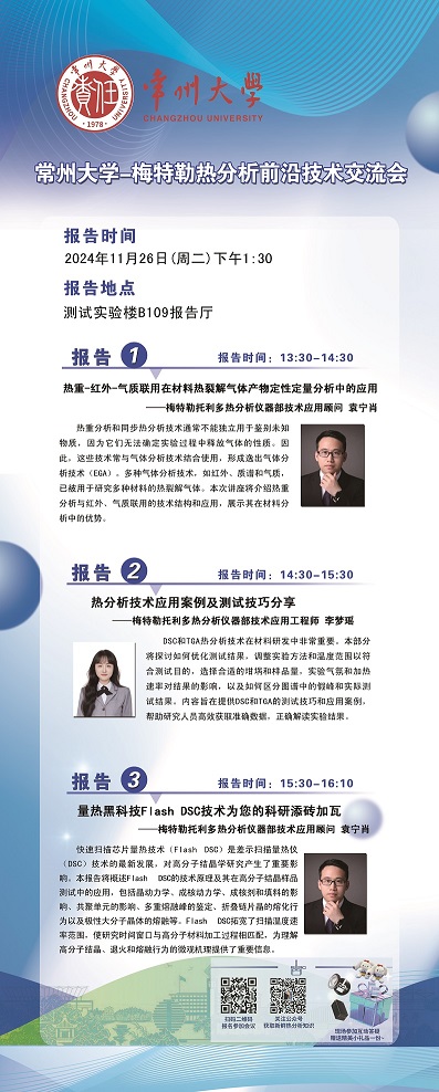 【學術報告】11月26日學術報告—常州大學-梅特勒熱分析前沿技術交流會