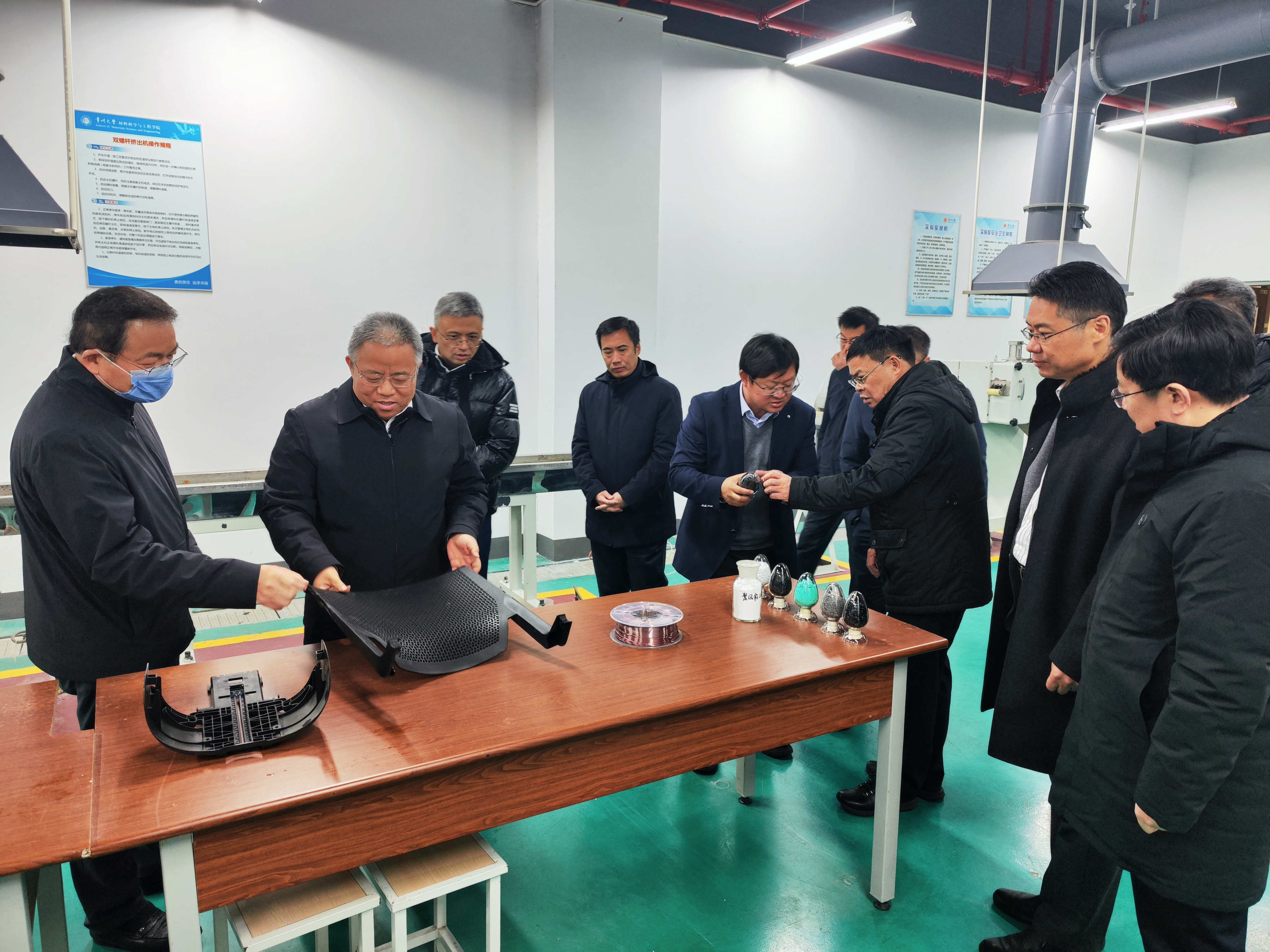 陳海群、陳群陪同李永林一行參觀了高分子成型實驗室、高分子測試實驗室、聚合物改性聯(lián)合研發(fā)中心主題科技館等相關(guān)科研平臺。 李永林一行參觀聚合物改性聯(lián)合研發(fā)中心主題科技館 李永林一行參觀高分子成型實驗室