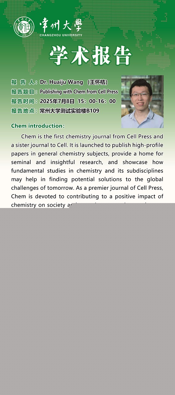 | 【學(xué)術(shù)報(bào)告】7月8日功能雜環(huán)研究院學(xué)術(shù)報(bào)告——王懷桔 chem雜志編輯 |