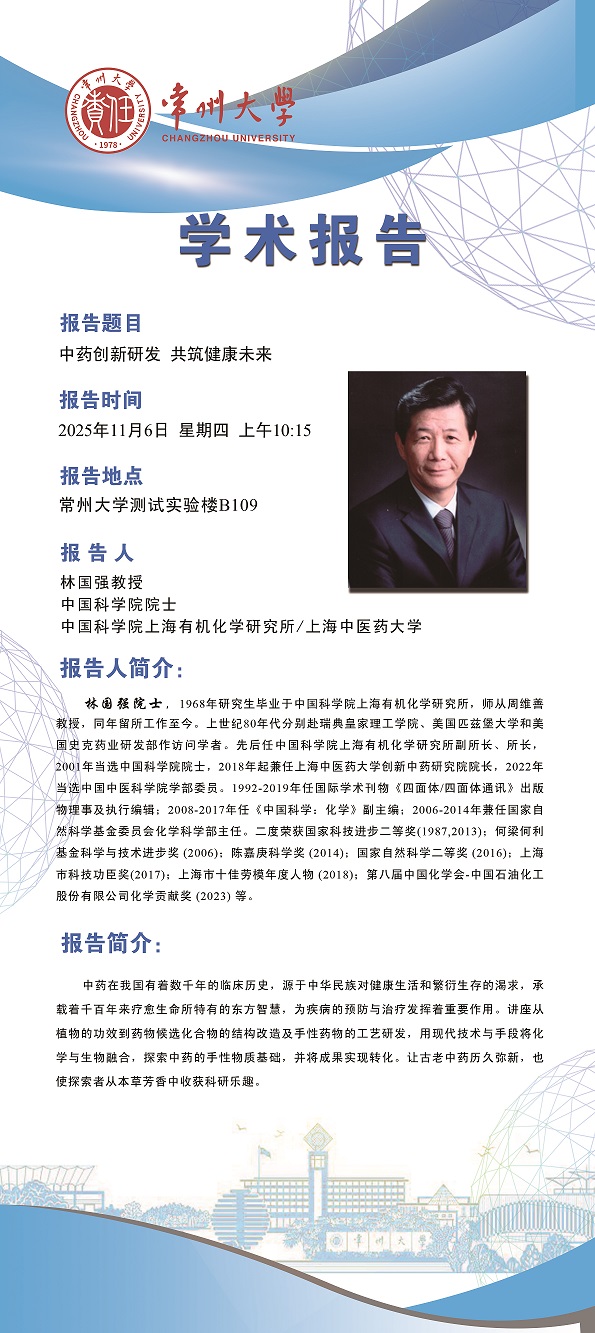 【學術報告】11月6日自然與合成有機化學研究院學術報告——林國強院士 中國科學院