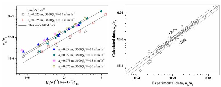 ,模型計(jì)算結(jié)果得到了實(shí)驗(yàn)數(shù)據(jù)的驗(yàn)證。模型顯示:非理想流動(dòng)系數(shù)(前期工作定義)是影響泄漏速率的關(guān)鍵。 過(guò)程強(qiáng)化是實(shí)現(xiàn)化工節(jié)能、減排的重要途徑。對(duì)于蒸餾過(guò)程而言,深入理解大型塔設(shè)備中多相流的流體力學(xué)行為和傳質(zhì)行為是實(shí)現(xiàn)科學(xué)強(qiáng)化的基礎(chǔ)。王俊博士在前期研究工作中認(rèn)為氣相偏流是造成大型塔設(shè)備分離效率顯著降低的關(guān)鍵,并給出/導(dǎo)出了偏流機(jī)理和理論模型(Wang Jun, et al. AIChE J, 2015, 61: 1032–1042.);該模型被成功應(yīng)用到板式塔設(shè)備傳質(zhì)特性參數(shù)——相界面積的預(yù)測(cè)中(Wang Jun. et al. AIChE J, 2016, 62: 905–915)。至今,王俊博士圍繞該領(lǐng)域氣相偏流模型研究在AIChE Journal期刊上已連續(xù)發(fā)表了3篇研究論文。系列研究成果證實(shí)了氣相偏流模型具有廣闊的應(yīng)用前景。